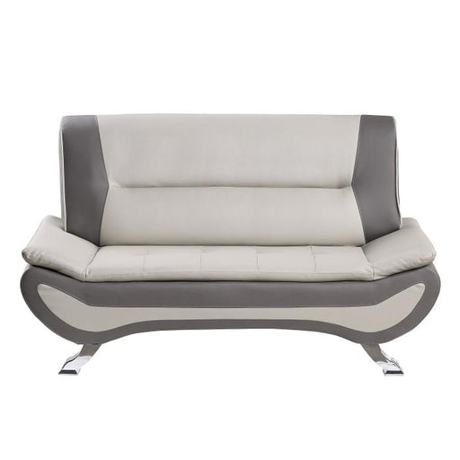 Mid-Century Modern inspired design comprises the timeless look of the Everton Collection. Gray chenille covers the modern framed love seat with geo...