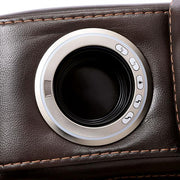 ABRIELLE Dual Power Sofa, 84"L X 40"W X 40"H, 297.62lbs. Enjoy the space-age design and comfort of this multi-functional dream sofa. It features two power recliners with power headrests activated by a simple touch of a button on the cup holders in each arm. The center back cushion has a drop-down table with reading lights, two cup holders, a USB port, and A/C electrical outlets. The lift-up armrests provide storage for remotes, phones, and other accessories. The channel back and seat design adds extra comfort to this sleek styling and it is highlighted with a contrast stitch for added beauty. This high-tech group is covered in rich dark brown faux leather with a three-year wear warranty.