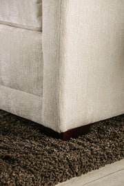 To say that this sofa set is immaculate is an understatement. The neutral tones and simple silhouette lends to the focus of the piecethe warm ivory chenille that wrap the set. With padded cushions on the inside, the track arms provide support, while the oversize back pillows are loose and comfortable. To top it off, pillows in solid and graphic light gray are included for a classic contemporary look.