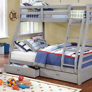 California II Cherry Twin/Full Bunk Bed w/ 2 Drawers Cherry, Walnut, Grey, &Oak