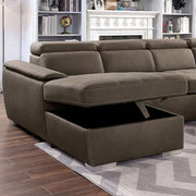 HUGO Sectional, 127 3/4"L X 86 1/4"W X 32"H, 418lbs. Define your family room with the comfortable and spacious Hugo Sectional. This corner sofa set features a contemporary style with a U-shaped design that leaves space for everyone. Integrated storage offers plenty of space for pillows and blankets, and a pull out bed keeps you ready for overnight guests. Soft, durable upholstery and bracket legs will keep you and your family enjoying this sectional through many get-togethers or family movie nights.
