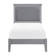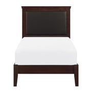 Merging traditional and transitional design creates the look of the Seabright collection, providing a unique platform from which to style your bedroom. The black painted finish allows for exceptional versatility of placement and decorative inspiration. The twin bed features framed, color-coordinated, faux leather padded headboard insert and an ultra-low-profile footboard.