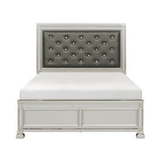 Modern glamour is exemplified in the design of the Bevelle Collection. Acrylic crystals frame the Eastern King bed, reflecting the light to create eye-catching drama. The silver finish serves as the perfect complement to the medallion accents. Providing contrast to finish is the dark gray faux leather, button-tufted headboard panel. 80.75 x 87.75 x 59.75H
