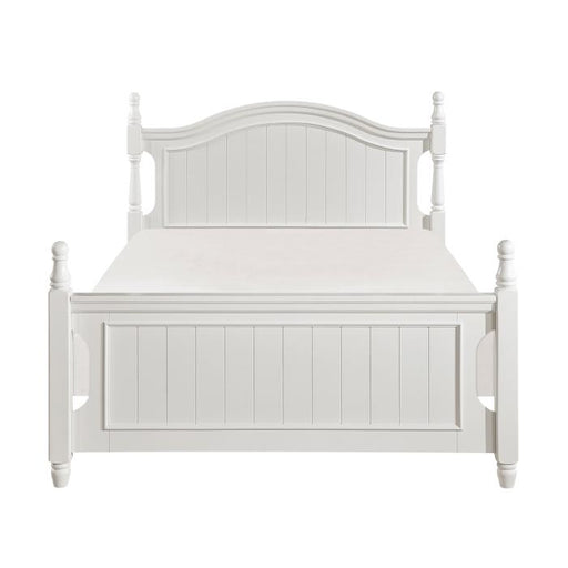 Clementine Collection by Homelegance White finish Made of man-made wood Includes headboard, foot-board, rails and slats This bed includes box spri...