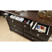 With smooth carved panels, this dresser will add a chic upgrade to your bedroom dcor. A dark bold finish sets off the stylish design of the contrasting metal drawer pull handles. Felt-lined top drawers provide safe haven for more delicate possessions, hidden behind the bold paneling designs of each drawer front.