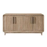 Elevate your home's organization and style with the buffet server. Crafted from a harmonious blend of oak veneer, solid wood, and engineered wood, and finished in a beautiful natural tone, this versatile server offers both aesthetic appeal and practical storage. Featuring two spacious storage cabinets, each equipped with adjustable shelves, it provides ample space to neatly tuck away dinnerware, linens, or media essentials. Its timeless design seamlessly integrates into various decor schemes, making it an ideal addition to your dining room, living room, or entryway for a touch of refined organization.