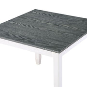 Freshen up your dining room decor with these chairs, bench, and table. With a bright white finish, it's like a ray of sunshine brought indoors! The tapered wooden legs and contoured frames of the matching chair are all finished in the same lively color. Conversely, the padded linen-like cushions and the flat table top are finished in a lighter shade of gray--giving this set just enough contrast without losing its bubbly appeal.