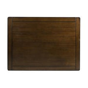 Designed for your cozy dining nook, the transitionally styled Mosely Collection will be a perfect fit. Vertical slat back chairs– featuring black faux leather seating with contour stitching – flank the routed tabletop. The five-piece dining collection isoffered in a dark brown cherry finish.