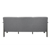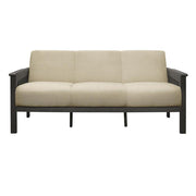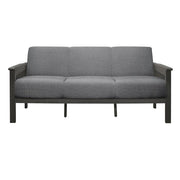 Designed with inspiration from the Arts & Crafts movement, the Lewiston Collection will be a classic addition to your home’s décor. The sofa's transitionally styled legs and vertical slat-supported wood arms are finished in an antique gray, providing complementing contrast to the brown linen-like fabric covering.