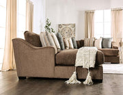 FARRINGDON Sectional, Brown, 102"L X 70"W X 40"H, 340lbs. The biggest room in your home deserves the very best piece. The stylish look of this oversized sectional will bring great warmth and comfort to your living room, with its curved arms and attached chaise. Upholstered in chenille, its neutral shade allows it to work in a plethora of home decor motifs. Soft pastel pillows only add to its undeniable charm. From rustic farmhouse to a more modern space, the clean lines and muted palette will ensure a perfect fit.