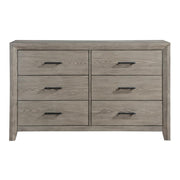 Bring a modern, rustic touch to your bedroom with this Silas Bedroom Collection. Crafted from durable acacia wood and selected hardwoods, the dresser features beveled edges and dovetail drawers with ball bearing glides. The sleek gray finish enhances the natural wood grain while the matte black drawer pulls adds elegant touch, making this a versatile addition to any décor. Coordinating Queen bed, Eastern King and California King bed, nightstand, mirror and chest are also available.
