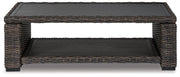 Style. Comfort. Quality. Value. This outdoor coffee table really goes to town, giving you the total package for outstanding outdoor living. Crafted to withstand the elements, this outdoor table’s resin wicker base and rust-proof aluminum frame ensure carefree living, while the aluminum surfaces provide stylish appeal. Cool, clean lined and casual, it's perfect for use inside or out.