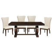 - Dining set includes dining room table and 4 side chairs
