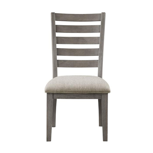 This upholstered dining chair elevates the art of casual rustic style. With a distressed nutmeg finish, antiqued nailhead trim and textured polyest...