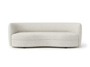 Compact fitted kidney-shaped single cushion, curved arms and backrest, and barely-there wooden legs contribute to this piece's tight fit and ultra comfort. Besides the intriguing shape, the other draw here is the visual impact it brings to any modern space. The boucle fabric features metallic undertones which when paired with a neutral color palette under certain lighting conditions, allow the texture to glitter and shine in the most undeniably chic way.