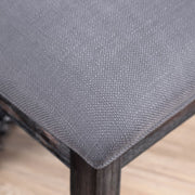 Rustic style and polished metal sheens create this sumptuous dining set. U-shaped supports contrast with clean, lustrous accents. Panel cushioned chairs are upholstered in soft linen-like fabric and keep you pleasantly supported for extended dinners. Product Dimensions: 20"W x 27"L x 40"H