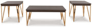 Nothing but the bare essentials here. Combining contemporary styling with a modern vibe, this table set accentuates your sofa or loveseat in the simplest way. A warm goldtone metal frame and rich dark wood-tone tabletop exemplify minimalist sophistication. Anchor your living room furnishings with this stunning statement.