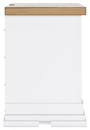 Casual style with substance. This two-tone nightstand raises the bar on comfortably cozy design in your soothing sanctuary. A sturdy silhouette with a classic white finish and black metal hardware exudes modern farmhouse vibes. The butcher block oak veneer top adds a relaxed aesthetic. And bedside charging for your go-to devices is made easy with power outlets and USB ports.