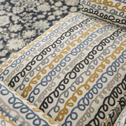 Chair Product Dimension: 32"L X 35"W X 36"H (SEAT HT: 20 1/2", SEAT DP: 21") Simplicity is the name of the game with this chair. Pops of colorful and playful lines are found, giving this chair a friendly and approachable personalitythe navy and gold accents popping against the neutral gray linenlike fabric.