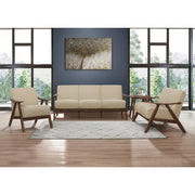 The retro-inspired wood framing of the Damala Collection will perfectly accent your modern home décor. Subtle contouring to the sofa’s wood frame is finished in walnut, presenting as a classic complement to the brown fabric that covers the padded sofa’s seat and back.