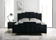 FLORIZEL Night Stand, Black, 22 1/4"W X 14 3/8"D X 24 1/4"H, 35.3lbs. Coming in a bold color, this night stand stays true to its glam roots. Between the classy, upholstered soft flannelette and the gold-coated steel legs, it is designed for the sophisticated urbanite and their modern city oasis.