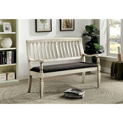 Georgia Antique White/Gray Love Seat Bench, 50"W X 23 1/2"D X 41"H, 48.4lbs. This loveseat bench can be put next to the dining table or sit on its own as a stunning accent piece. Its mission style back, turned legs and antique white finish fill your home with farm house charms. Features: Transitional Antique White Solid Wood,Wood Veneer,Others Bold & Sturdy Design Padded Fabric Chair Nailhead Trim