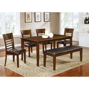 In both casual and formal settings, this beautiful bench welcomes you to refined contemporary dining space with solid wood in a rich dark cherry finish. With squared tapering legs, a clean and crisp silhouette brings focus to its bold wooden construction.