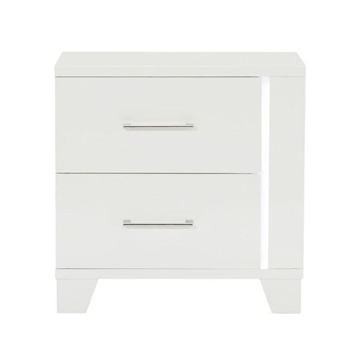 View full detailsKerren Collection by Homelegance White high gloss finish Crafted from manmade wood and wood Polished chrome tone bar pulls 2 drawers Dovetail d...