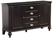 Marston Collection by Homelegance Furniture Dark Cherry finish 4 Drawers 2 Doors Oval bale pull and knob hardware Hutch features 3 doors Glass ins...