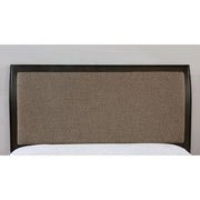 JAMIE Cal.King Bed, 91 3/4"L X 78 7/8"W X 50"H, 133.1lbs. A linen-like fabric padded headboard highlights this otherwise mostly no-frills design. It's a classic standard squared motif finished in a commanding walnut color. This bed is a great choice for those who prefer a sophisticated environment.