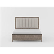 The Newell Collection’s subtle rustic aesthetic and transitional style pairs effortlessly with your desire to refresh your bedroom’s current look. The design of the California King bed features recessed picture frame molding and a two-tone gray and oak finish over oak veneer. Further accent comes in the form of the bed’s light brown textured fabric vertical padded headboard insert. 79.5 x 90.5 x 64H