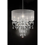 Rigel Silver 31 1/2"H Ceiling Lamp, 26"L X 26"W X 31 1/2"H, 32lbs. This ceiling lamp dazzles with its curving frame and hanging crystal. Its shade is gentle and softens the lighting to create a dreamy mood setter. Features: Evangelia Ceiling Lamp Iron 1PC/CTN